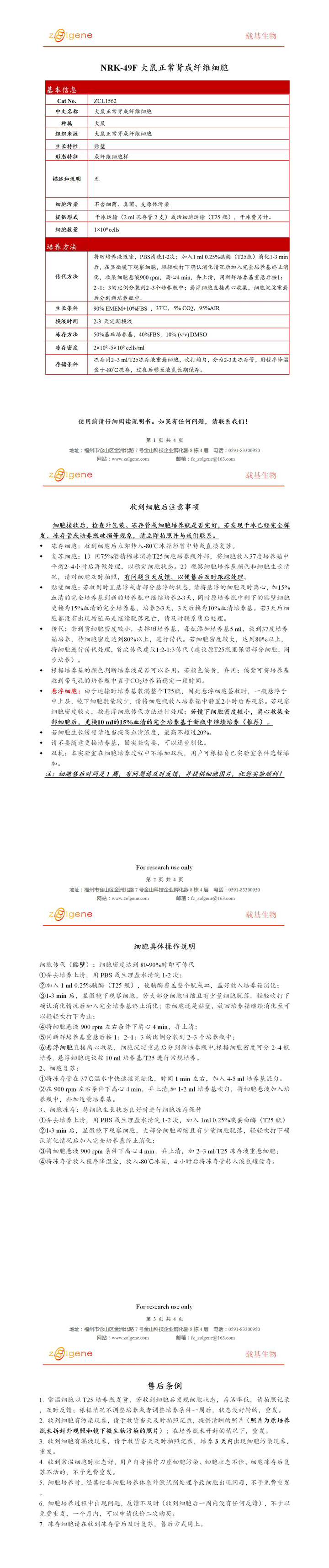 【ZCL1562】NRK-49F大鼠正常腎成纖維細胞